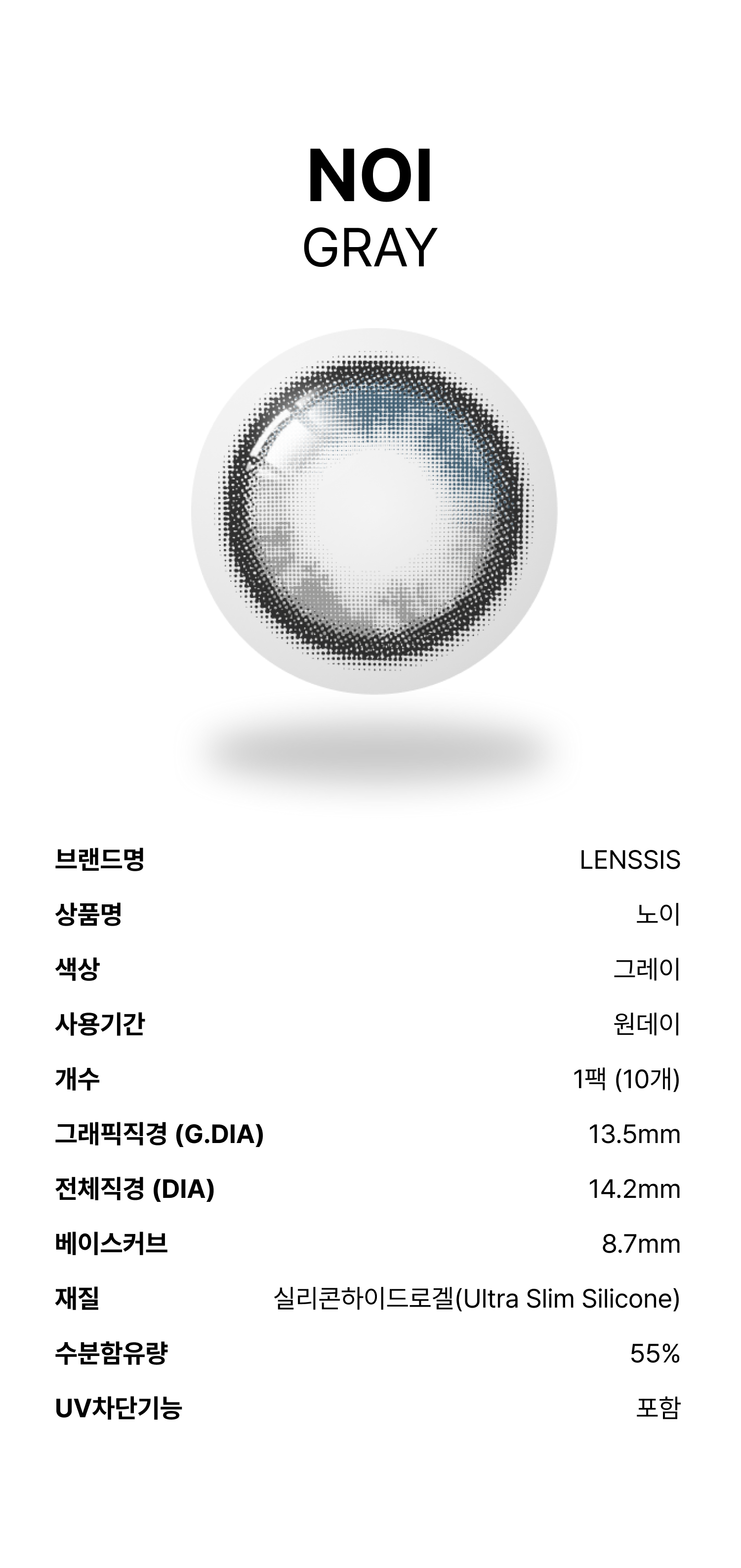 *렌시스 제품의 그래픽에는 착용자의 홍채와 자연스러운 조화를 위한 초미세 윤곽 그래픽이 포함되어 있으며