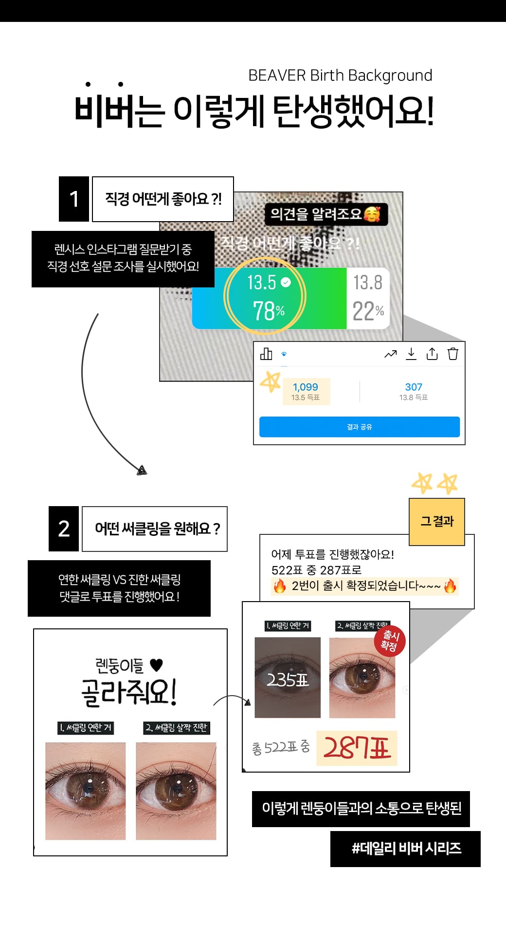 *렌시스 제품의 그래픽에는 착용자의 홍채와 자연스러운 조화를 위한 초미세 윤곽 그래픽이 포함되어 있으며