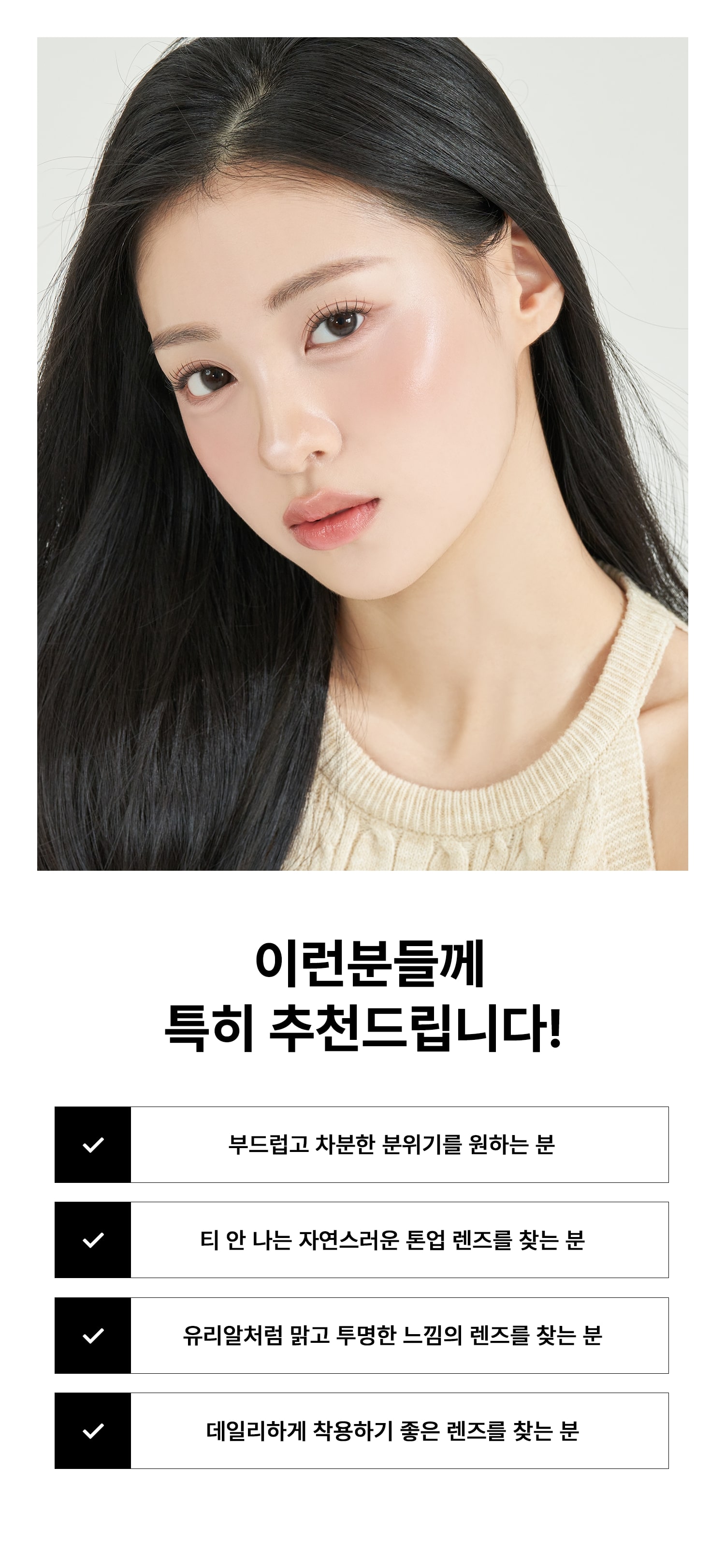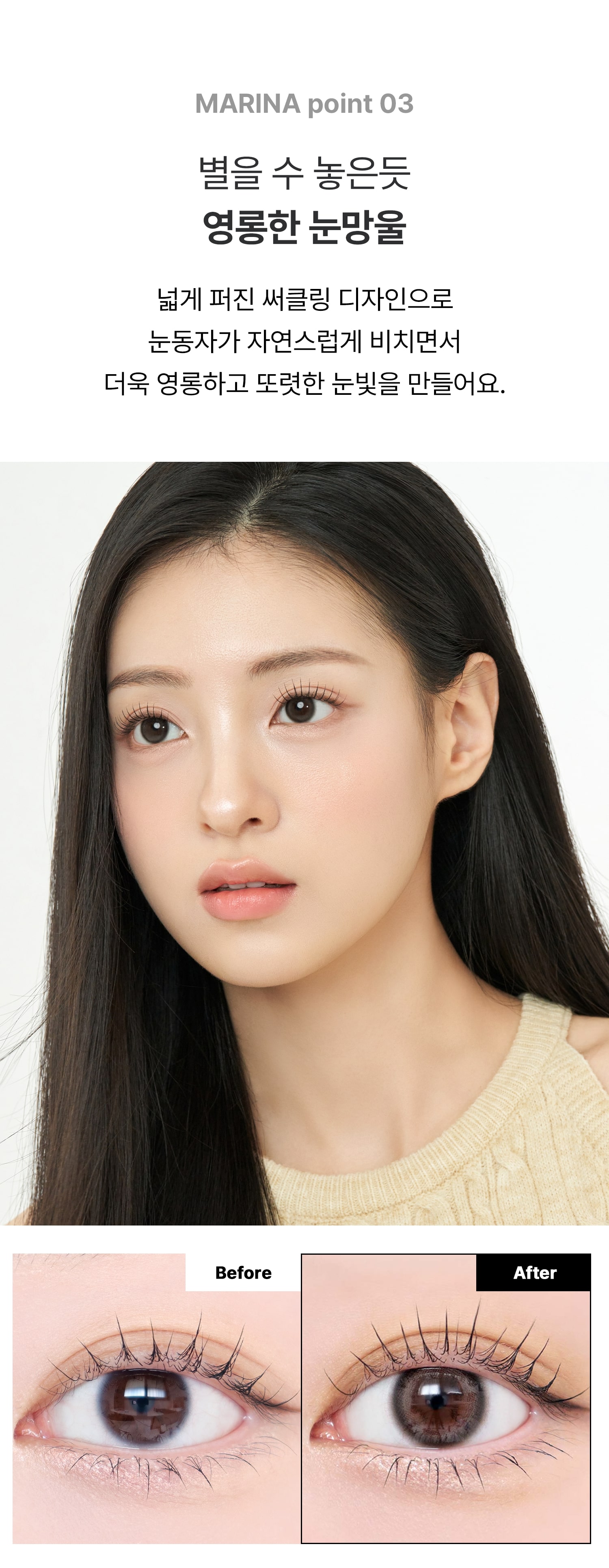 *렌시스 제품의 그래픽에는 착용자의 홍채와 자연스러운 조화를 위한 초미세 윤곽 그래픽이 포함되어 있으며