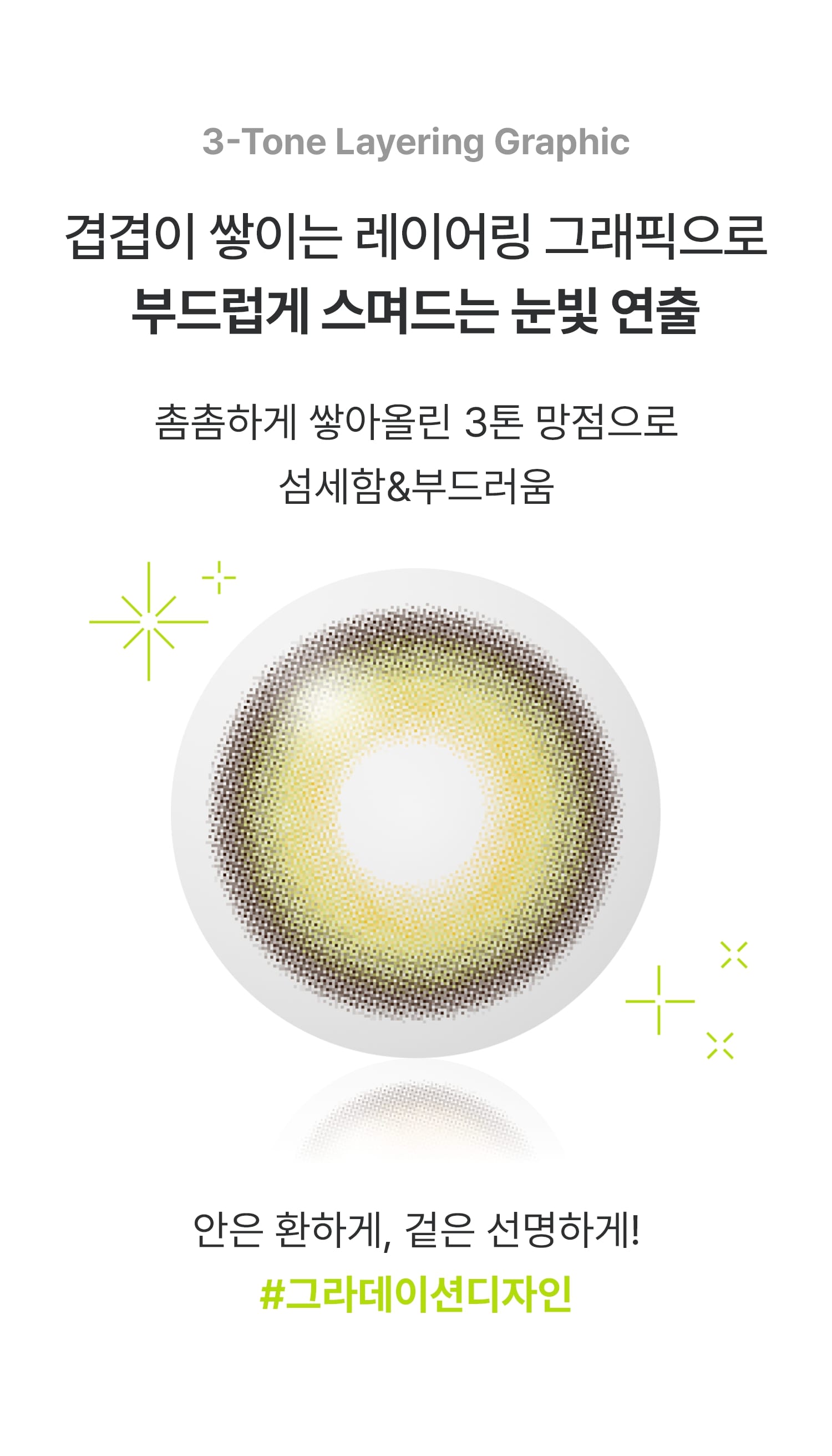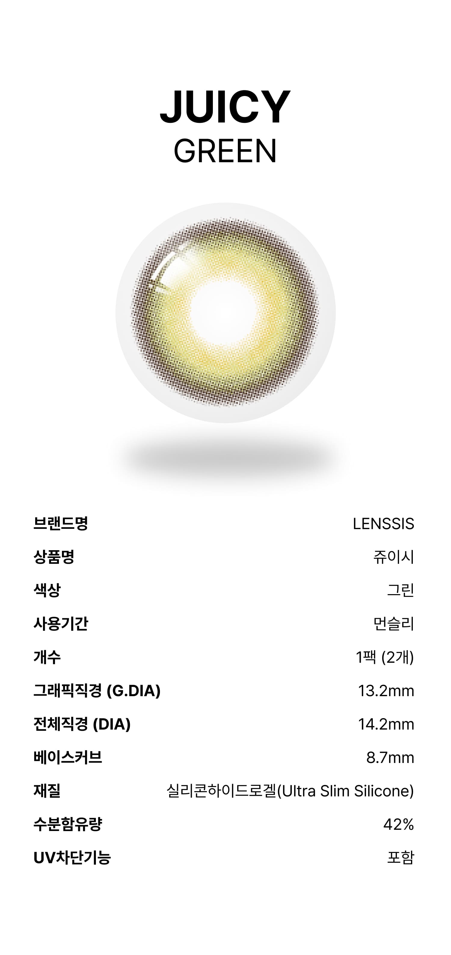 *렌시스 제품의 그래픽에는 착용자의 홍채와 자연스러운 조화를 위한 초미세 윤곽 그래픽이 포함되어 있으며