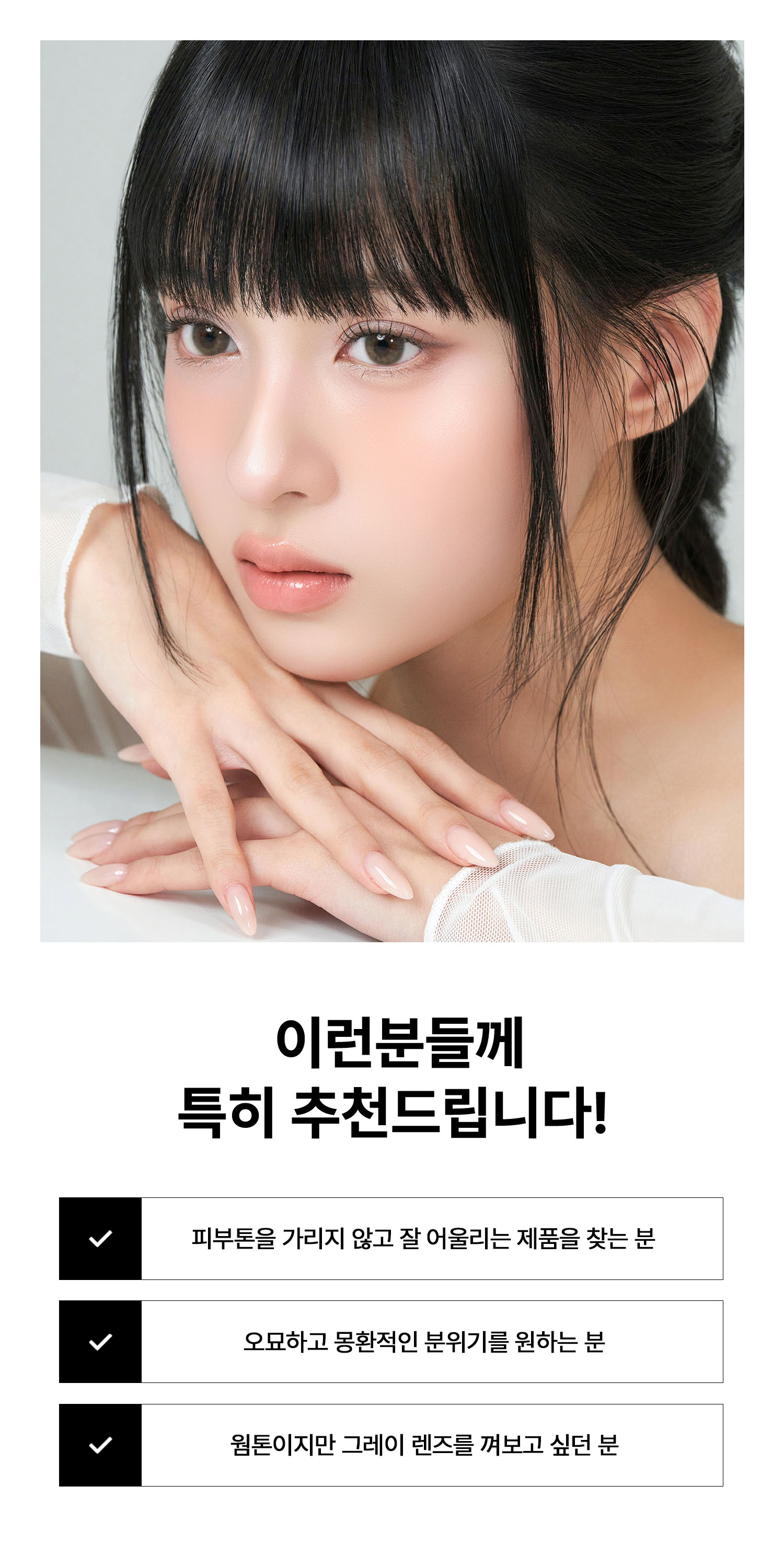 *렌시스 제품의 그래픽에는 착용자의 홍채와 자연스러운 조화를 위한 초미세 윤곽 그래픽이 포함되어 있으며 제품에 따라 실제 착용 시 그래픽 직경(G.DIA)이 0.0~0.2mm 정도 작게 느껴질 수 있습니다.