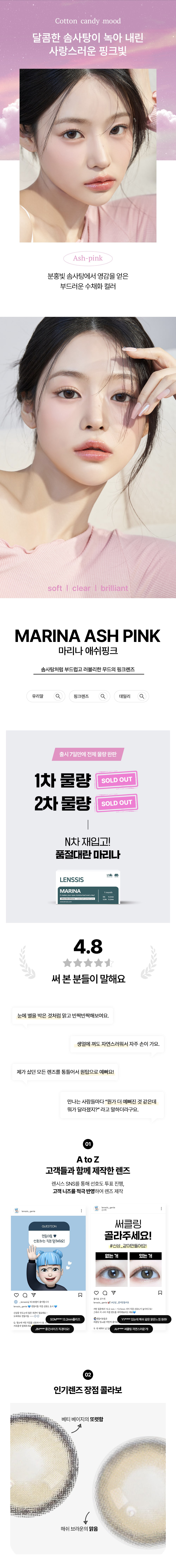 마리나 [ 애쉬 핑크 ] 1개월용