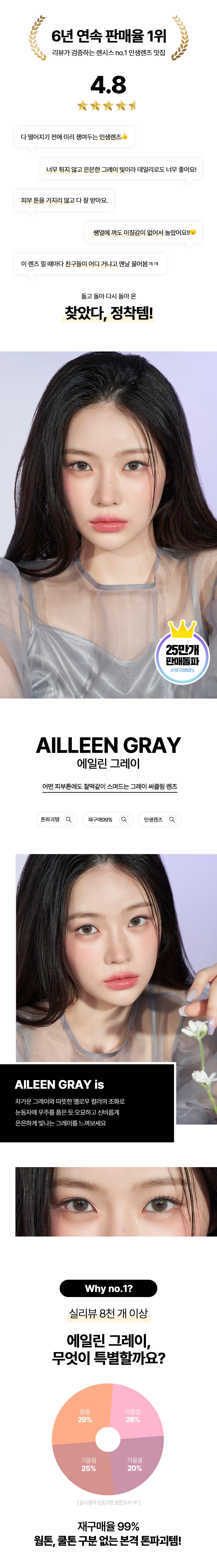 *렌시스 제품의 그래픽에는 착용자의 홍채와 자연스러운 조화를 위한 초미세 윤곽 그래픽이 포함되어 있으며