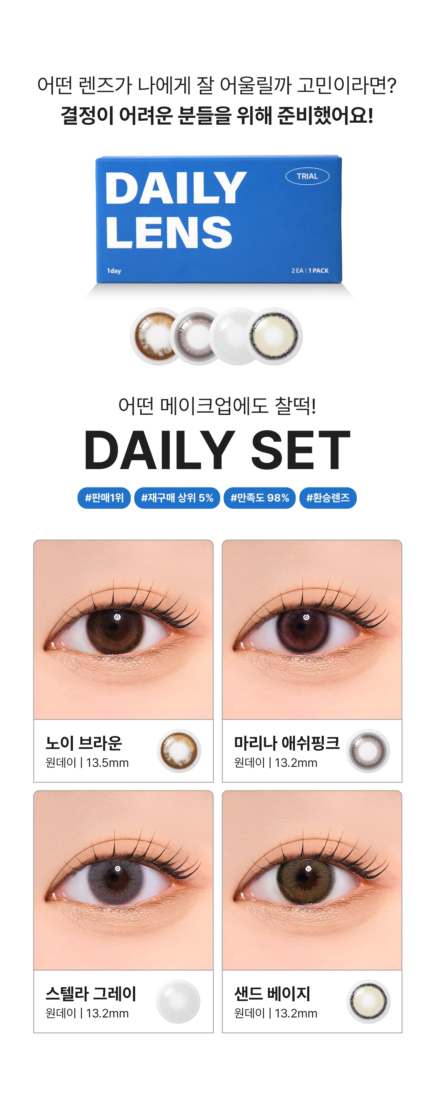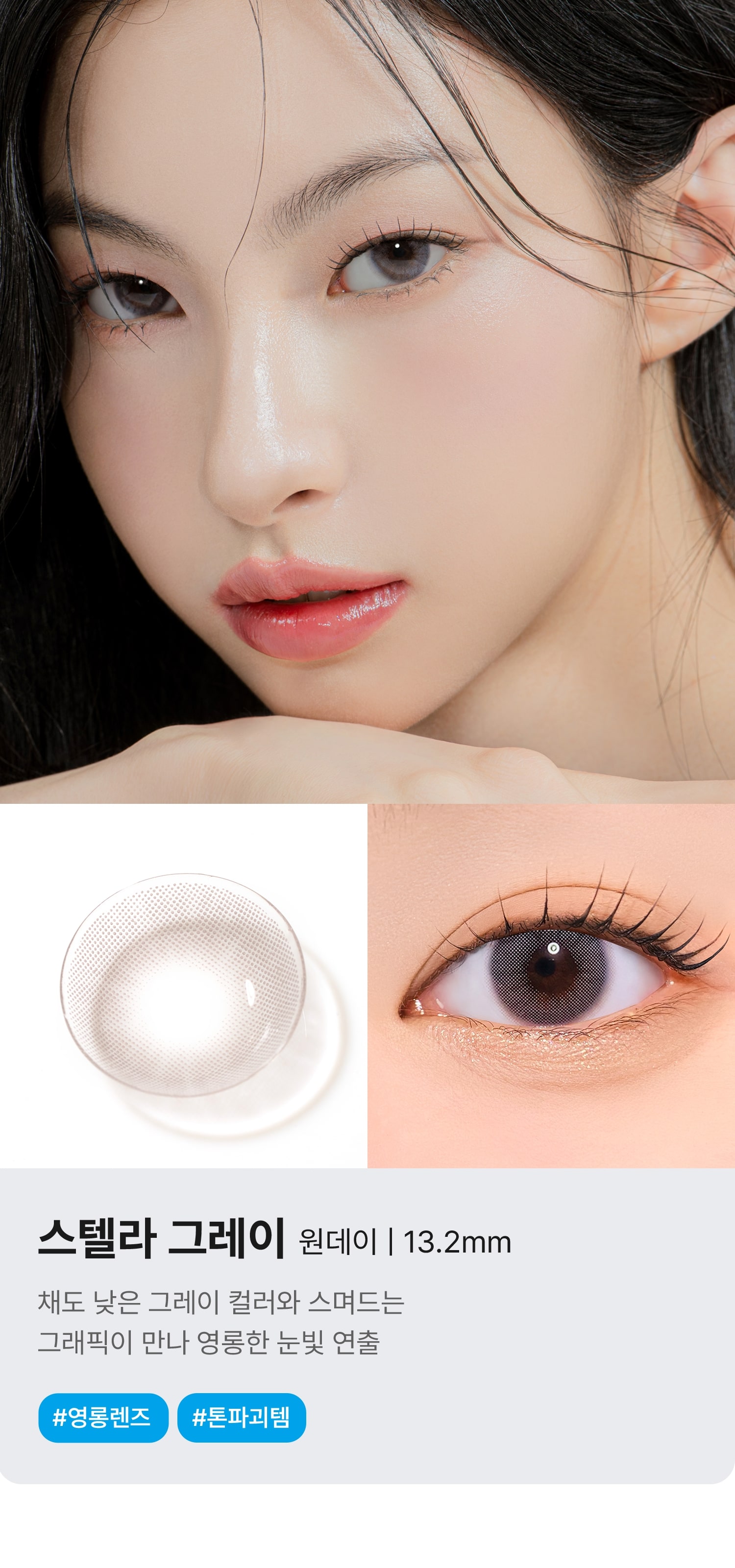 *렌시스 제품의 그래픽에는 착용자의 홍채와 자연스러운 조화를 위한 초미세 윤곽 그래픽이 포함되어 있으며
