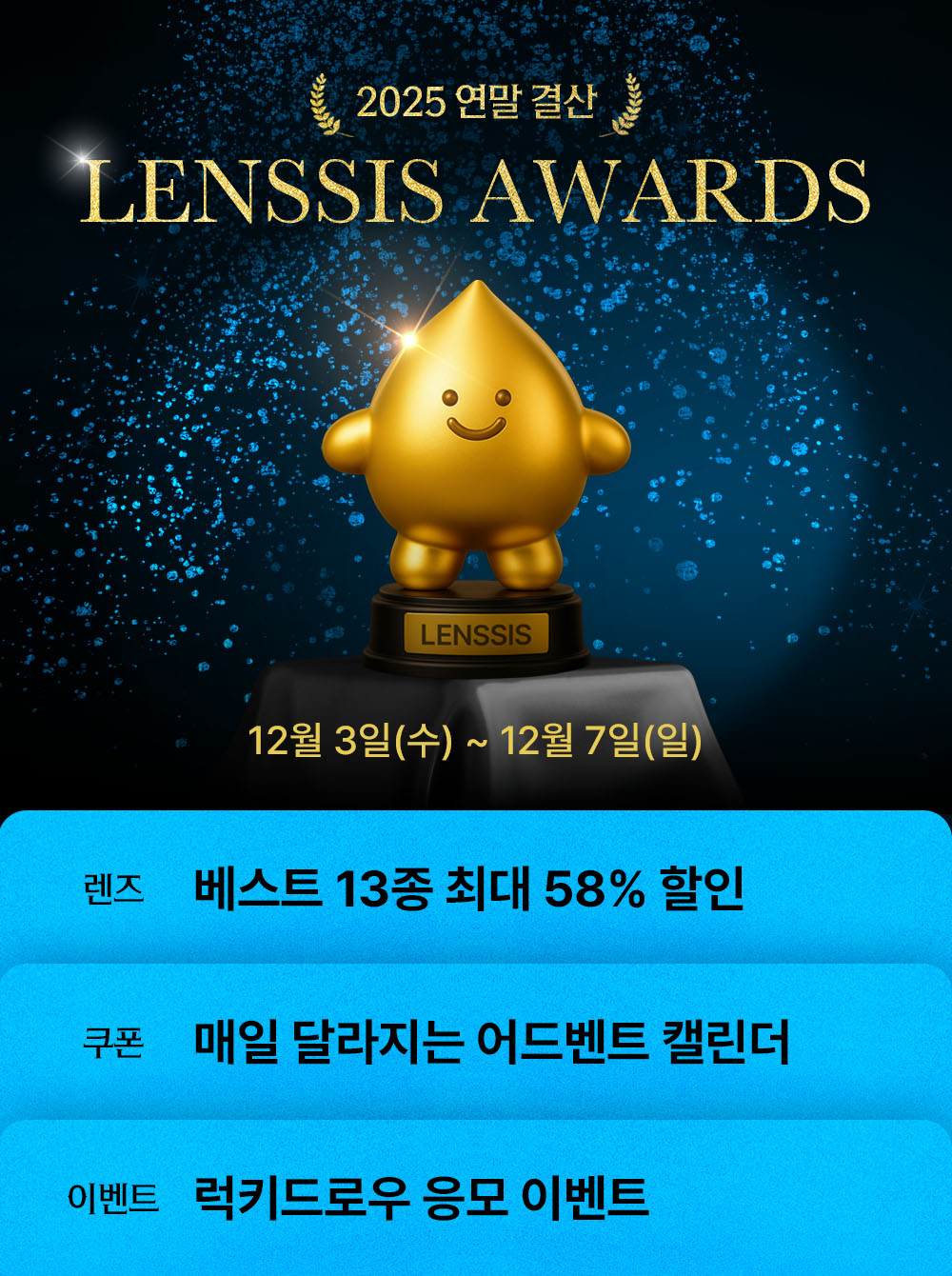 *구매해주신 제품이 출고 과정에서 품절될 경우, 주문이 자동으로 취소될 수 있습니다.https://lenssis-ko.com/251128?utm_source=homepage&utm_medium=band_banner&utm_campaign=251128_eyeglow_promo_band_banner